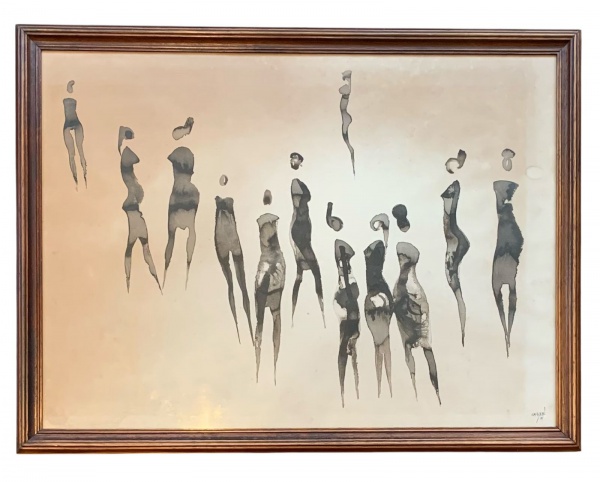 • Carybé (Lanús, Argentina, 1911  Salvador, Bahia, 1997)Sem título, 1971. Nanquim sobre papel, 56  78 cm. Medidas totais com moldura: 64  96 cm.Assinado e datado no canto inferior direito: Carybé / 71.Obra em nanquim apresentando figuras estilizadas e fragmentadas, dispostas em composição ritmada e quase coreográfica  uma das marcas do traço maduro de Carybé. A economia cromática, restrita ao preto e cinza sobre o papel natural (acidado) enfatiza a gestualidade e a leveza gráfica que tornaram o artista um dos grandes intérpretes do movimento e da forma humana.Carybé (Lanús, Argentina, 1911  Salvador, 1997) foi pintor, desenhista, escultor, muralista, ilustrador e cronista visual da cultura brasileira. Radicado na Bahia desde 1950, tornou-se um dos mais importantes artistas ligados à representação da religiosidade afro-brasileira e dos costumes populares. Ilustrou obras de Jorge Amado, participou da Bienal de Veneza (1956) e da Bienal de São Paulo (1959 e 1961), sendo reconhecido internacionalmente por seu estilo vigoroso e profundamente brasileiro.